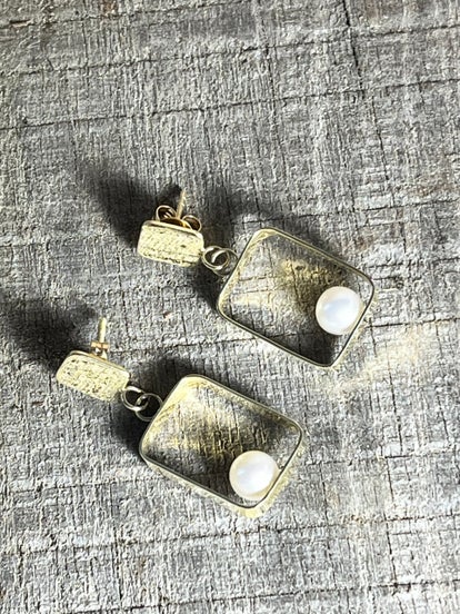 14K geelgouden oorstekers met 6mm zoetwaterparels. Handgemaakt.