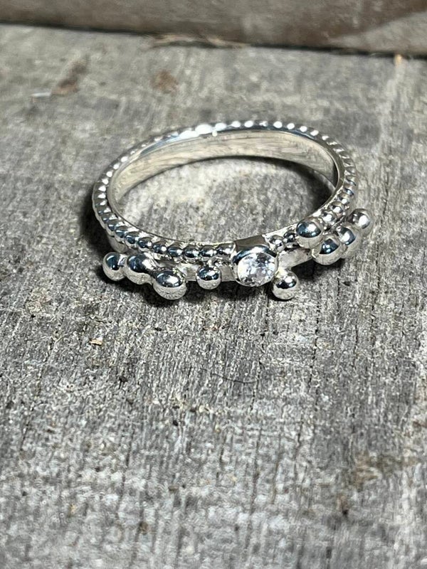 Een zilveren ring 925K met een 3mm zirconia. Handgemaakt.
