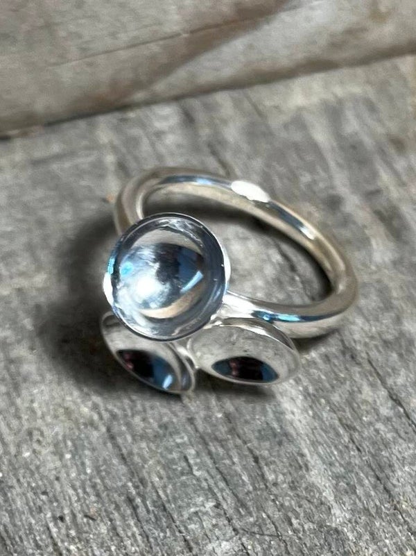 Deze zilveren 925K ring heeft 3 spiegelende cupjes. Handgemaakt.