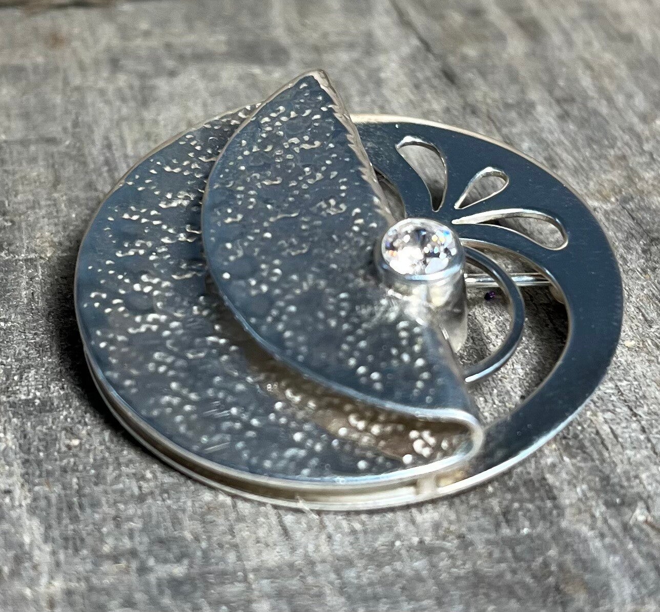Sterling zilveren 925K broche met speldsluiting en 5mm zirconia. Handgemaakt.