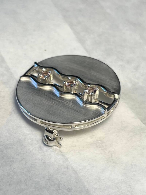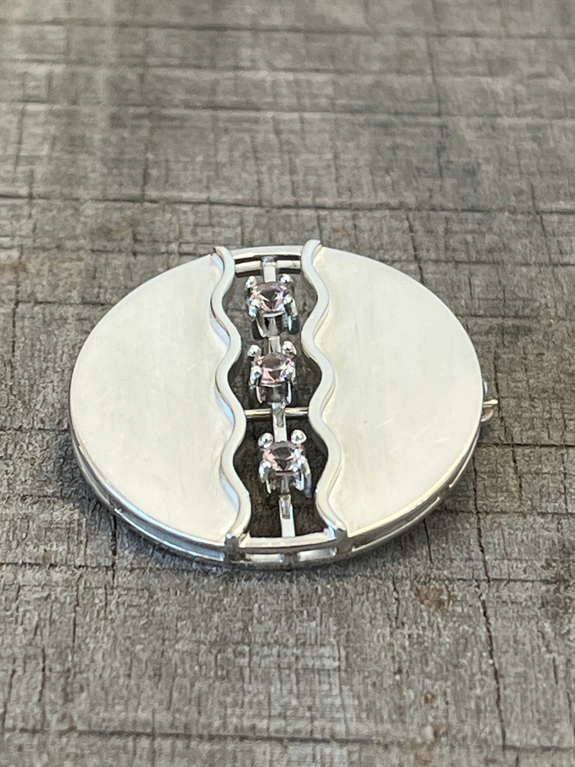 Sterling zilveren 925K broche met 3 morganiet steentjes van 3mm. De broche is handgemaakt.