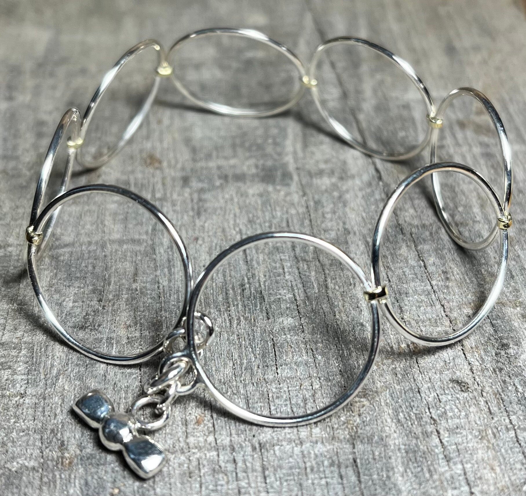 Dit 2 in 1 juweel kan op 2 manieren gedragen worden. Het handgemaakte juweel bestaat uit sterling zilver 925K met 14K geelgouden verbindingen.